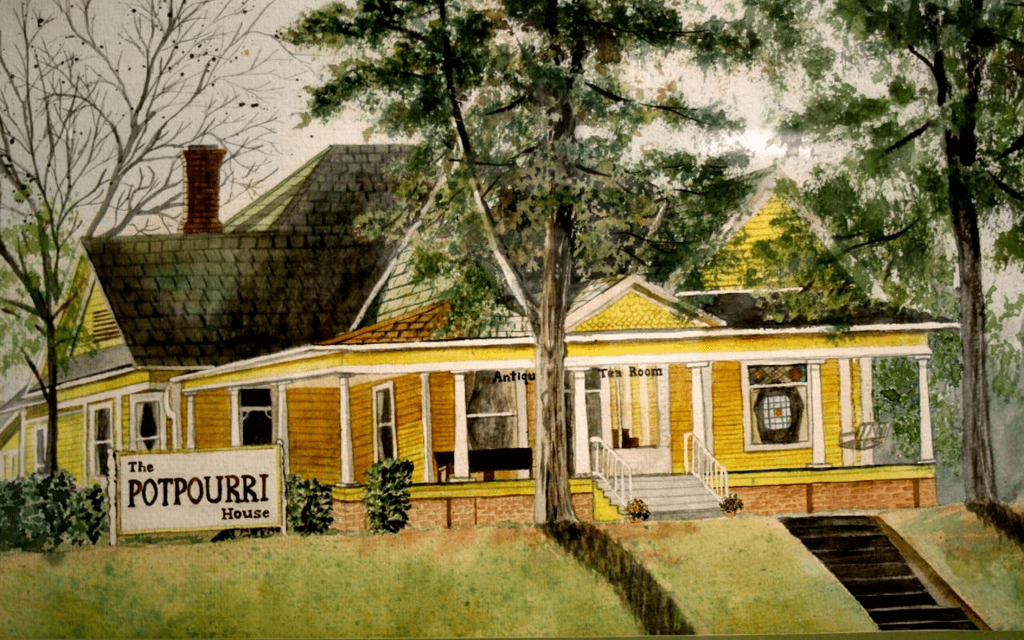 Les and Carol Ellsworth opened The Potpourri House in September 1982 as a tea room in a yellow 1904 Victorian home on Front Street in Tyler. The Ellsworths made many trips to Europe to furnish the new restaurant – and every piece of furniture could be purchased by customers, including their table and chairs!